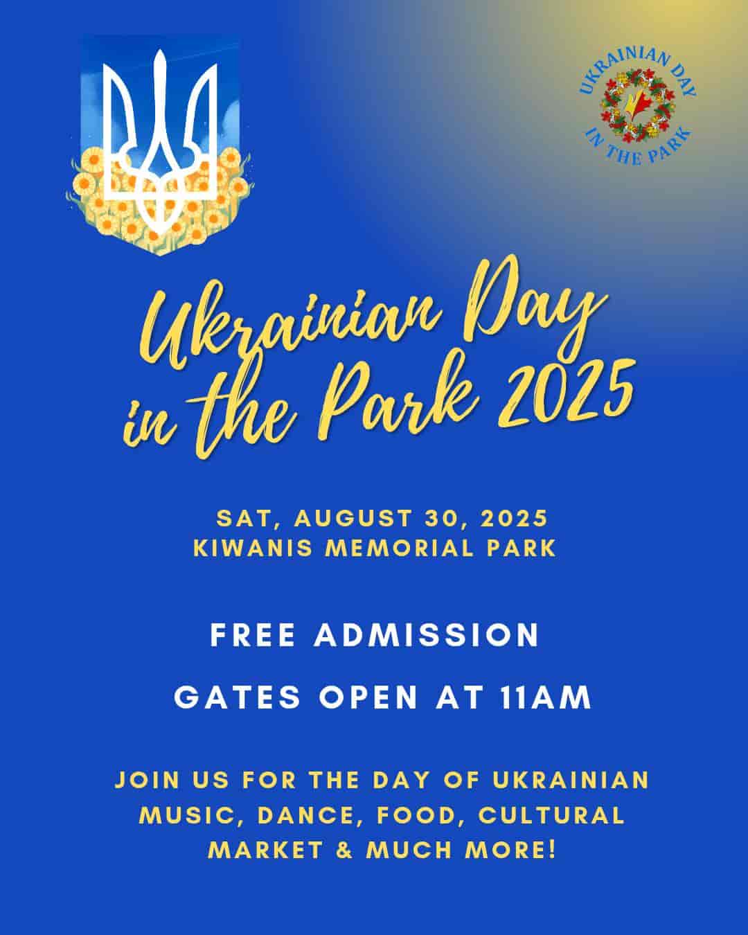Ukrainian Day in the Park 2025 is a free outdoor event that has been running for over 18 years! Our festival features stage performances, food vendors, beer gardens, children’s activities, 50/50, and more. Whether you are coming with friends, family or by yourself you are guaranteed to have lots of fun!