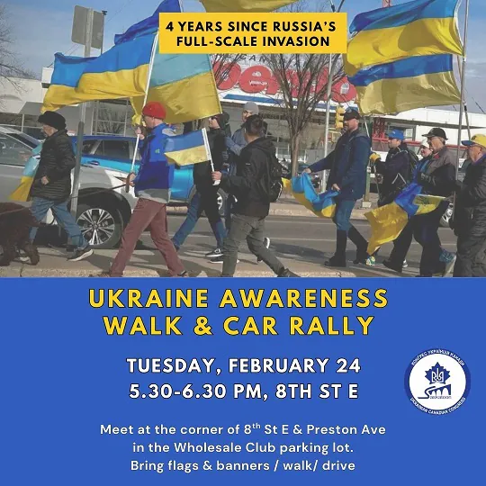 Join the Saskatoon Ukrainian Canadian Congress, in partnership with the Ukrainian Museum of Canada, as we mark the 4th anniversary of Russia’s full-scale invasion of Ukraine.